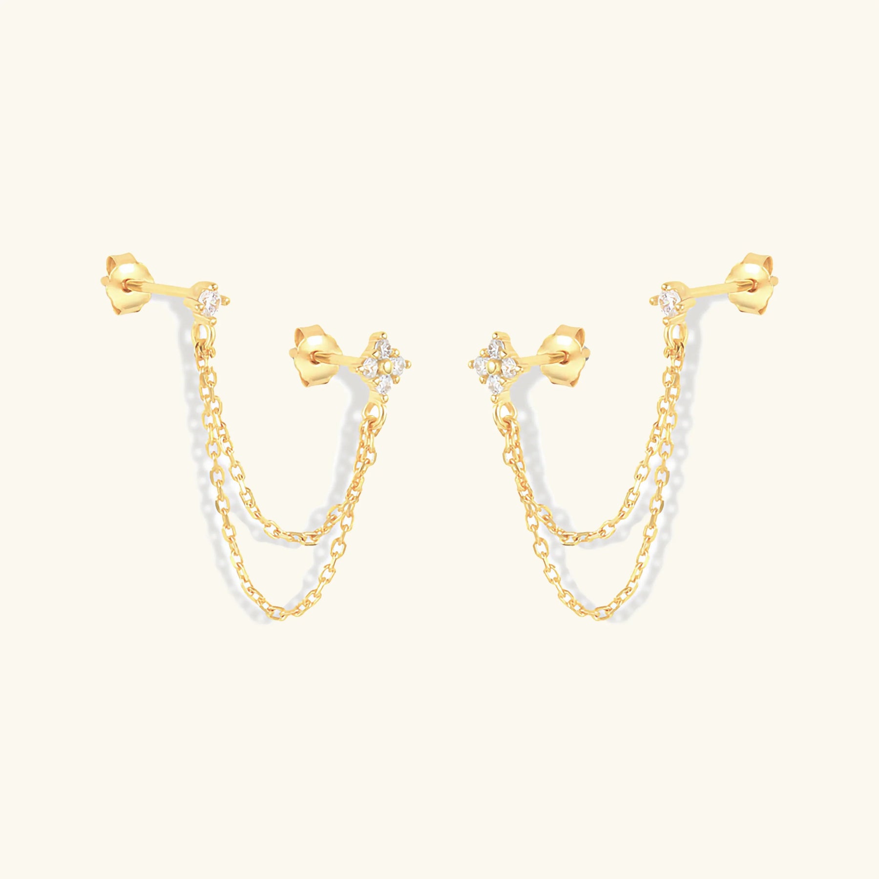 AVARIA’s Daniella redefines the classic stud earring with a layer of looping chains accented by visually captivating diamonds. Timeless elegance with a contemporary twist. Hypoallergenic and waterproof for ease and comfort all day long.