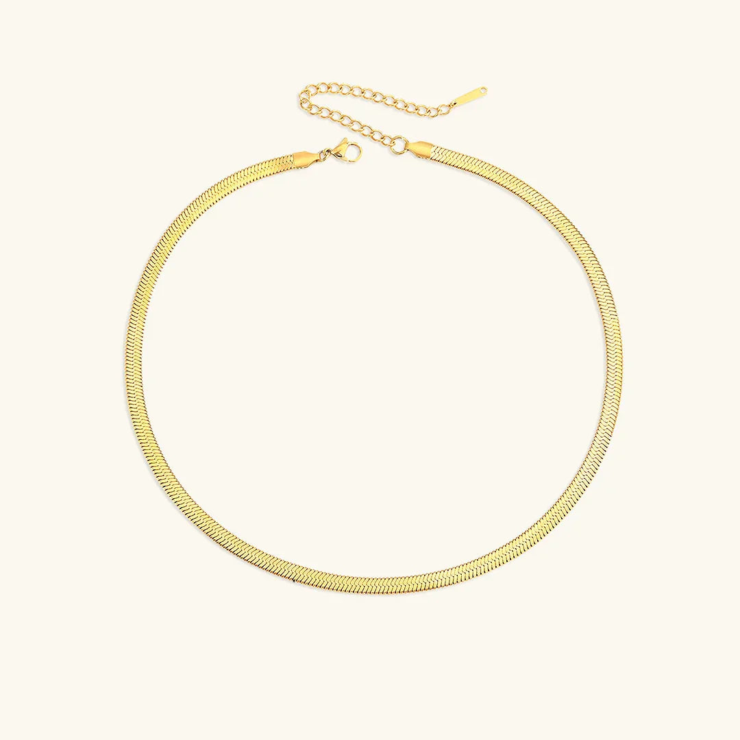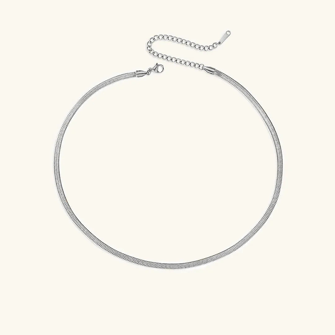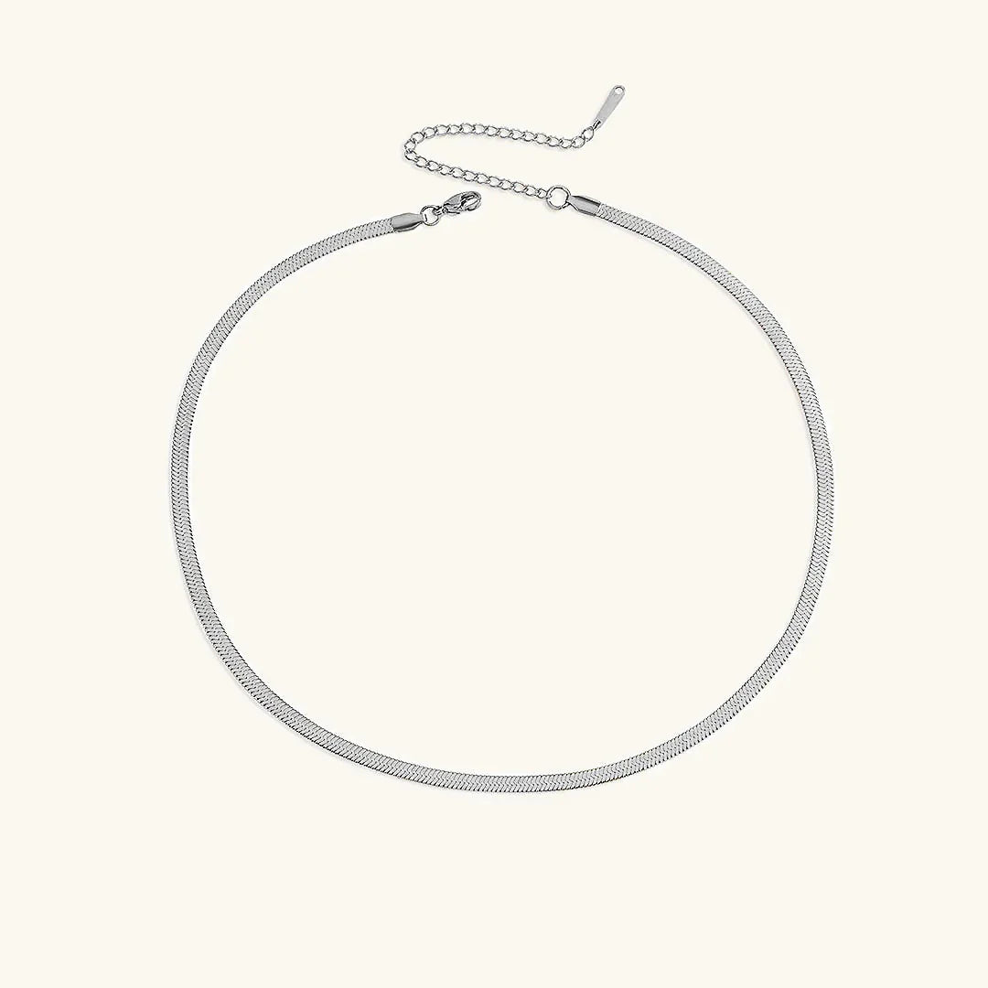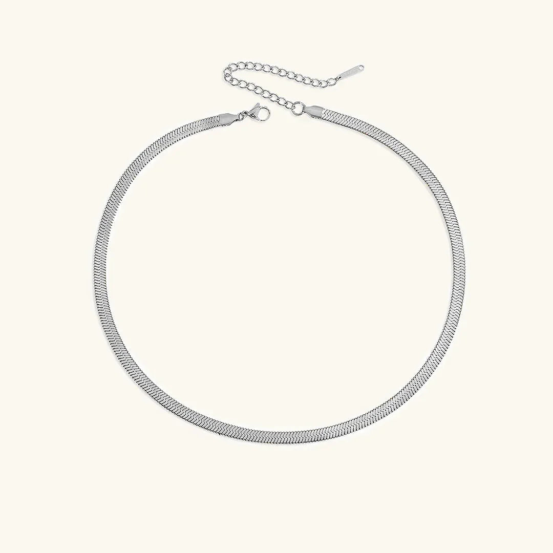 Die Elizabeth Fischgrätenkette wurde mit Blick auf Raffinesse entworfen und setzt ein Statement. Diese Halskette im Fischgrätenstil strahlt zu jedem Anlass erhabene Eleganz aus.