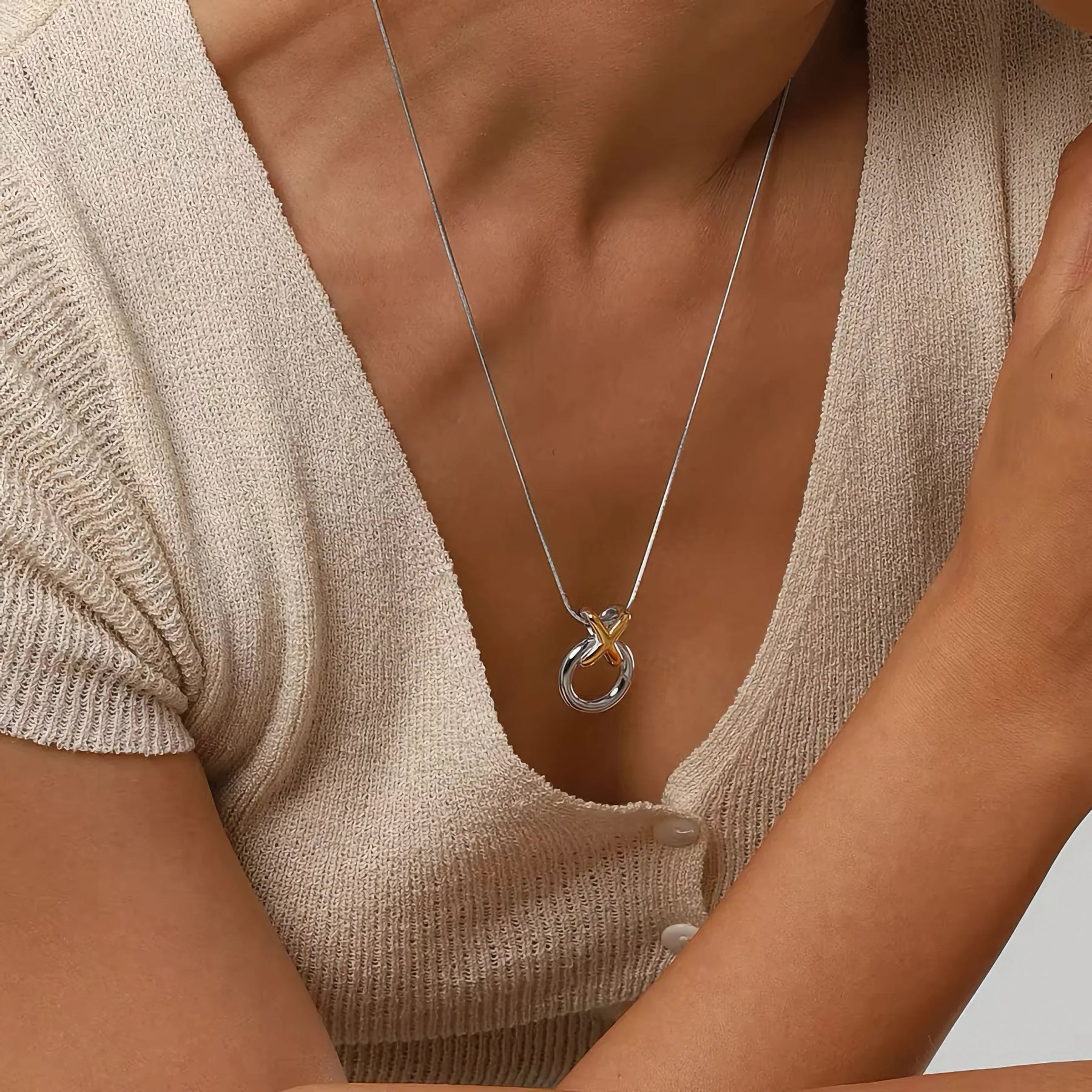 AVARIAs Mirabelle verleiht einem zeitlos-minimalistischen Look eine frische Note. Ein bezauberndes Schmuckstück mit einem zierlichen zweifarbigen Creolen-Anhänger, der an einer glatten, polierten Kette baumelt. Verleihen Sie Ihrem gesamten Outfit Charakter und Volumen. Und ja, es ist wie immer wasserfest und hypoallergen für sorgenfreies Tragen.