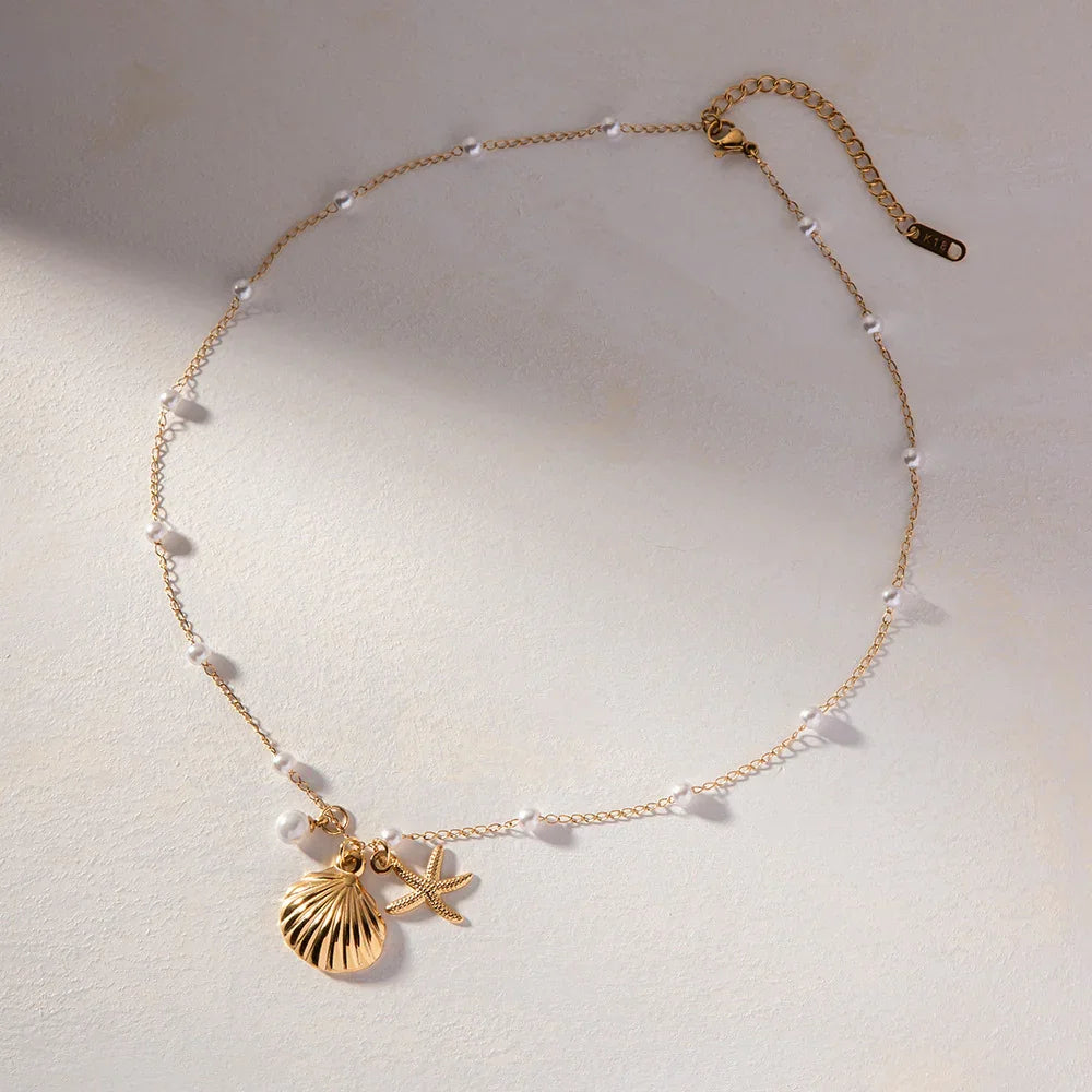 Verzaubern Sie mit der Rebecca Süßwasserperlenkette von Avaria den Charme der Küste. Die Muschel- und Seesternanhänger, gepaart mit einer perlenbesetzten Kette, erinnern an die Schönheit von Küstenlandschaften und ruhigen Gewässern. Ob am Meer oder in der Stadt – diese Kette verleiht jedem Outfit einen Hauch von Küstencharme. Und dank des hypoallergenen und wasserdichten Designs können Sie das Leben an der Küste unbeschwert genießen.