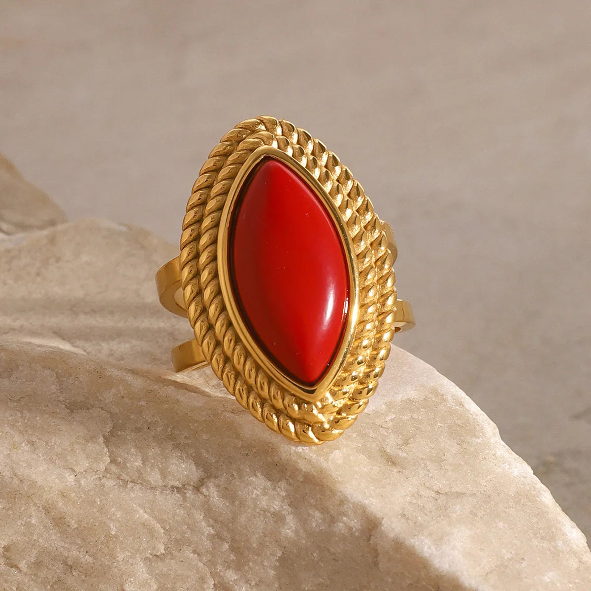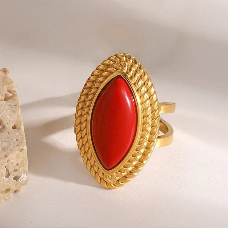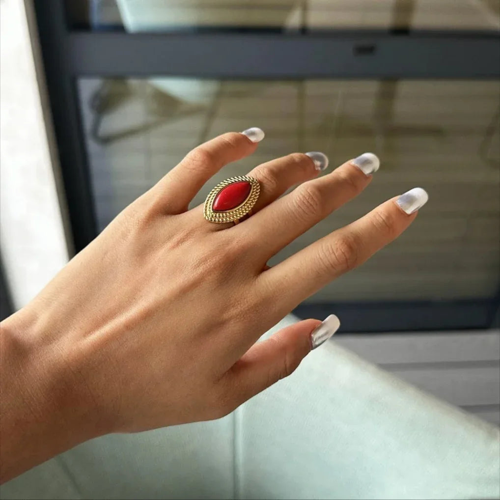 AVARIAs Heidi besticht durch eine markante Marquise-Fassade, eingerahmt von einer detailreichen Goldfassung, die Ihrer Schmucksammlung einen Hauch von Vintage-Eleganz verleiht. Wie alle AVARIA-Schmuckstücke ist es wasserdicht und hypoallergen.