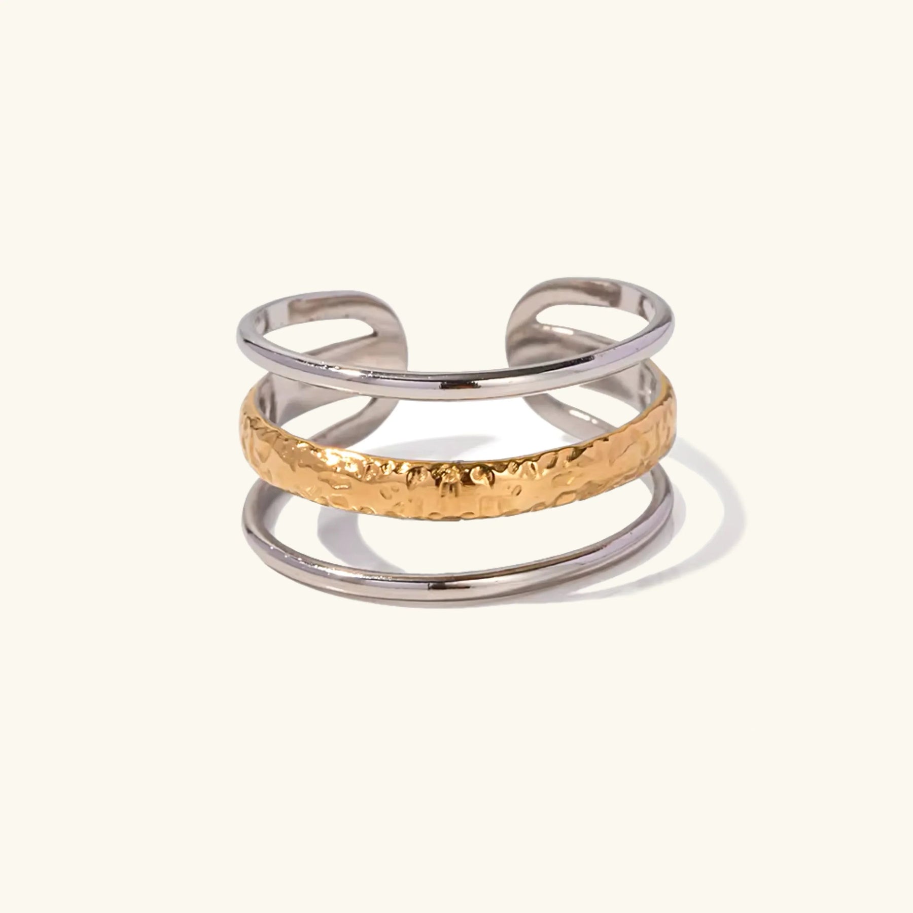 Fangen Sie das Licht mit jeder Bewegung der Shirley Goldohrringe ein. Ihr offenes, dreilagiges Design erzeugt faszinierende, schimmernde und glänzende Goldwellen. Hypoallergen und wasserfest sind sie Ihr neuer Begleiter für strahlende Tage und glamouröse Nächte.