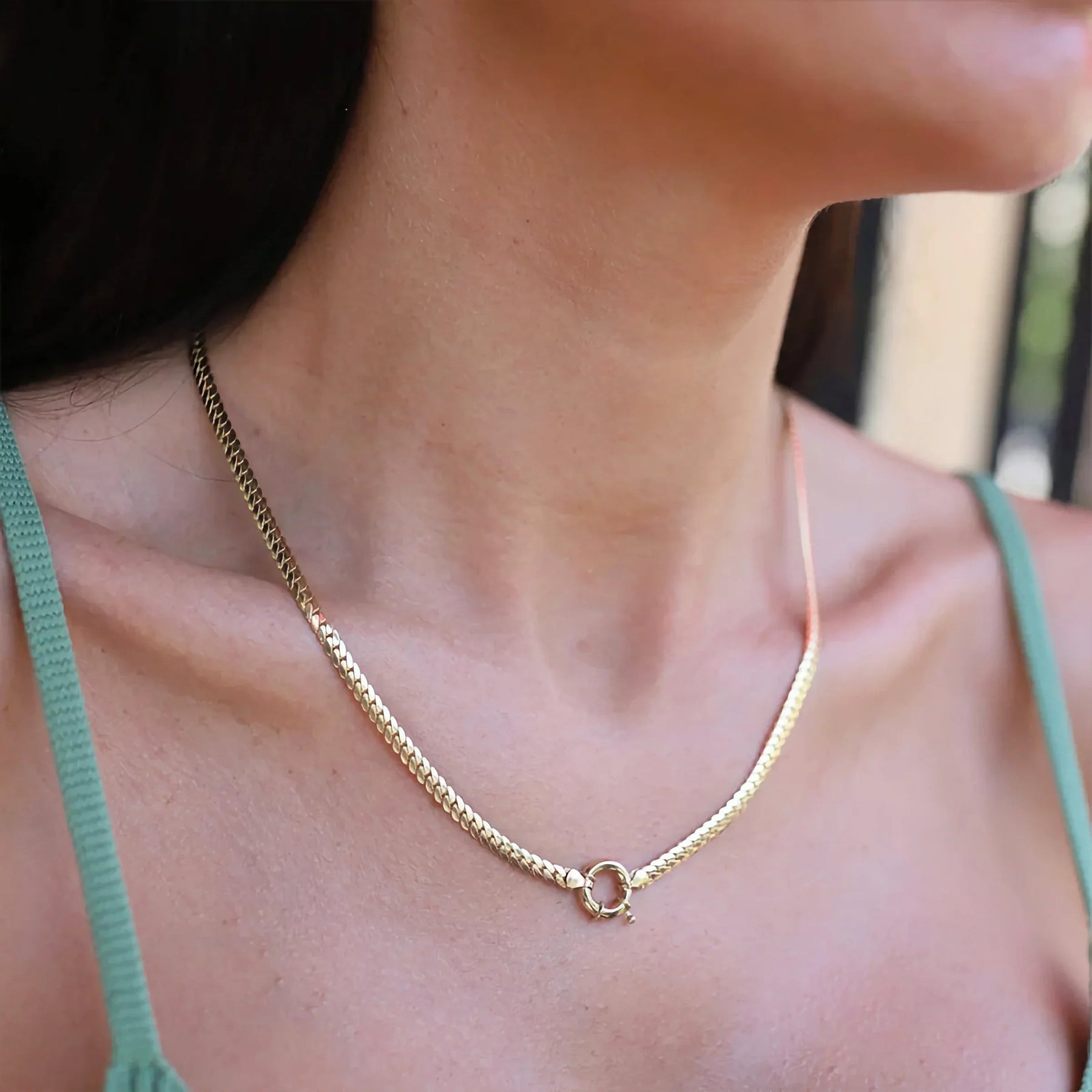 AVARIA’s Gardenia Pendant knows how to keep things bold and minimal. Featuring a classic herringbone silhouette with a ringed clasp at the center, it’s refined without being delicate. Like all AVARIA pieces, it’s waterproof, hypoallergenic, and made to last.