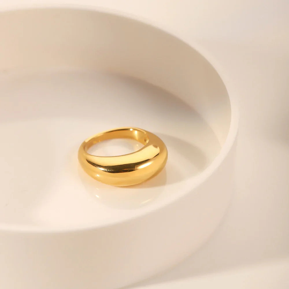 Anna flaunts a classic and timeless choice that will never go out of style. Made of waterproof PVD processed Gold for a smooth and durable finish, and can be worn alone or stacked with other rings for a versatile look.
